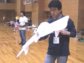 情報を聞きつけ、ある日おじゃますることにしました。 色々な自作機が集まって、あたかも「EPP機の集い」の ようでした。 午後になって風が強くなってきたので、飛ばすのがほんとに大変。