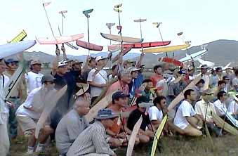 日本最大のハンドランチグライダーの大会で、事実上の日本一決定戦です。 風もほとんど無く、時々雨がぱらつくというあいにくの天気になりましたが、 |