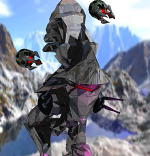 4面のボス、パワードアーマー<Nihonasi>です。 背中から出てくるビットは、 つねに自機に向かって正確にレーザーを発射します。 ビットは破壊することが出来ますが、 しばらくするとまた出してきますので、 本体を攻撃することに専念するといいでしょう。 また時々スピードを上げて体当たりしてきますので、 あまり近づかないように。