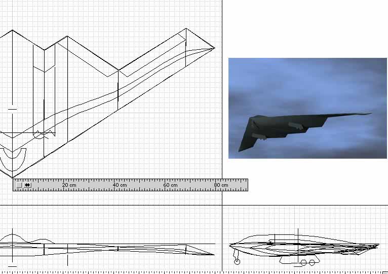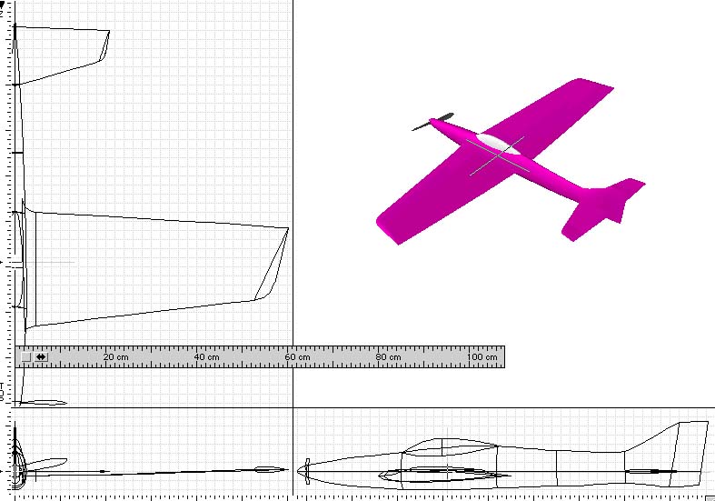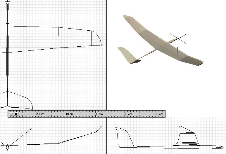 最近は、機体のデザインを考える時に、いつもメタセコイ ヤを使っています。 時々FMSで飛ばして、イメージを確認しながらデザイン出来るので、 とても楽しい作業ですね。 メタセコイヤのモデルの上面、側面、前面をそれぞれキャプチャーし、