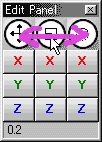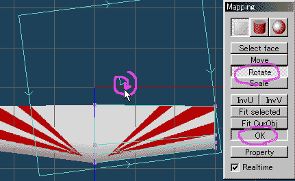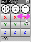 Drag X rotational button, it will rotate
