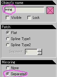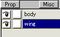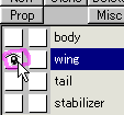 select a wing on the object panel.