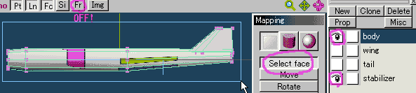Hide the one except for the wing and stabilizer.