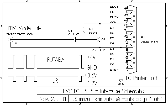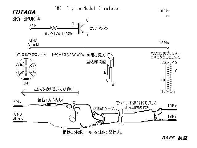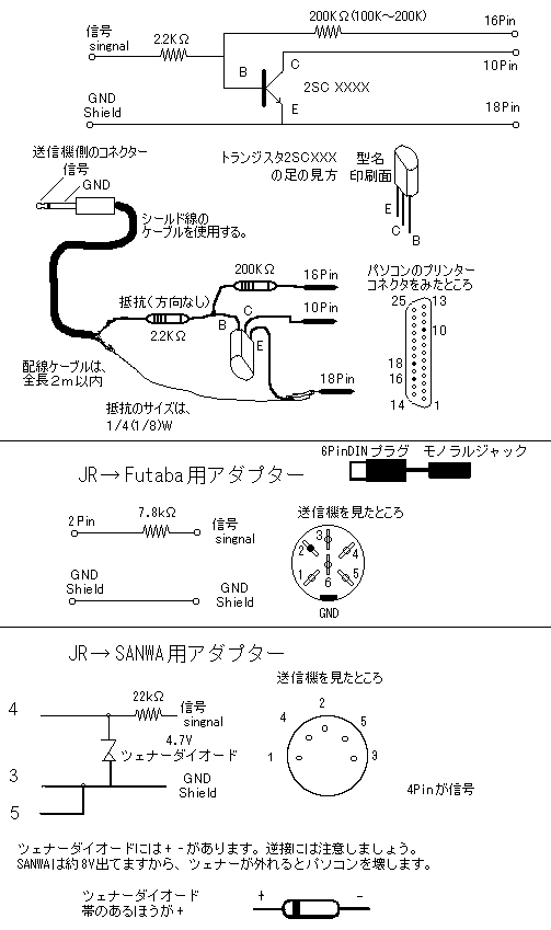 logic_wizardさんは 自作でプロポ型インターフェースを作り接続に成功しています。 清水さん設計のプリンタポートアダプター