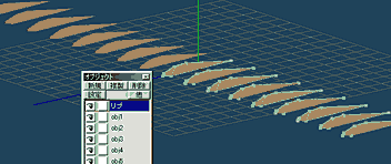 ●左右別々のマッピングをするために主翼を鏡面で作成しない方法 いったん鏡面で作ったあと、オブジェクトパネルで主翼を選んで オブジェクトメニュー>曲面ミラーのフリーズ を選ぶと、左右別々に編集できるようになります。 ●テクスチャーを作るためのペイントソフト フリーソフトでいい物があります。 Pixiaというペイントソフトで、無料でダウンロードできます。 http://www.tacmi.co.jp/pixia/ オンラインソフトウェア大賞で入賞した優れたソフトです。 使い方で解らないところは掲示板に書くと、すぐに教えて貰えます。 これで256x256サイズで解像度72dpiの絵を描き、bmpで保存します。 インターネットで飛行機の写真を探して来て、張り付けるのもいいですよ。 デジカメで取った手持ちの機体でもOKです。 ●裏面が選択されてしまう クリックしにくいときは、ここを押すといいですよ。