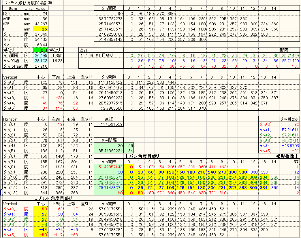 フォトフィールドの作り方 JOYAさんのサイトに詳しく書いてあります。 パノラマ撮影角度間隔計算表 クリックすると新しいウインドウで開きます。 ![]() NEW! パノラマ合成チュートリアル 桝岡さんが書いてくれたパノラマ合成チュートリアルはこちらです。 |