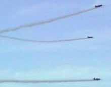 迫力のTOC機3機によるフォーメーション飛行が始まります。