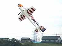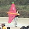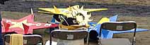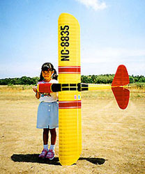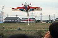 パイロットは小学生の女の子です。立派にフライトしていました。 この機体は、かんざし以外は段ボールで出来ているそうです。 |