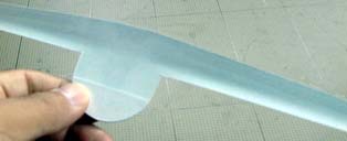 中央胴体部分を写真のように滑らかに曲げます。 (少し上反角を付けて下さい)
