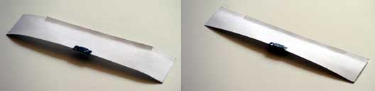 > まだメカは積んでないですが全備重量35gでできそうです。 > テストでは滑空はいいですが左右にうまく旋回できません。 > エレボンにしてありますが、上昇、下降は問題無いです。 > 旋回させようとするとほとんど旋回しないか、急激に落ちるかです。 > 動翼は今は翼の中央です。上反角ははっきりしたのはわかりませんが > たぶん2°くらいです。 > 無尾翼機は初めてなので教えてください。 > よろしくお願いします。 形を教えていただけると、