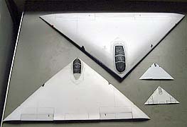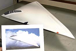 いろんな全翼機を飛ばしてみると、 何度墜落しても、壊れるところがほとんどないことに気がつきました。 これってスロープグライダーに良いんじゃないのー? しかも尾翼も胴体もないから、現地で組立てなくていいし。 紙袋にひょいっと入れてスロープに行けるように、