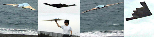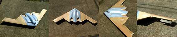全翼機なる物を作るのも初めてだし、ダクデットファンを使うのも初めてです。 何といっても飛ぶかどうか分からないので、 ただいまフィルムを貼る前にガムテープで補強して色々実験中です。 実機の離陸していく時の写真を見て、