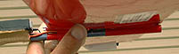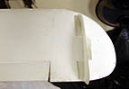 (ビデオケースをハサミで切って作りました。) 本当は後ろにはみ出させるように真ん中に一枚付ける方が安定しますが、 よりヘンテコな機体に見えるように翼端に付けています。(笑)