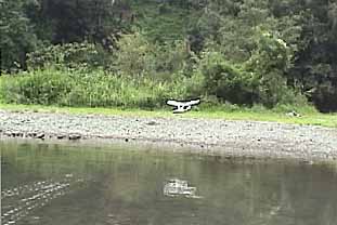 水たまりの上を旋回したのち、スムーズな着水に成功!