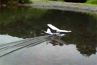 機体が非常に軽いため、波しぶきがほとんど立たないので、