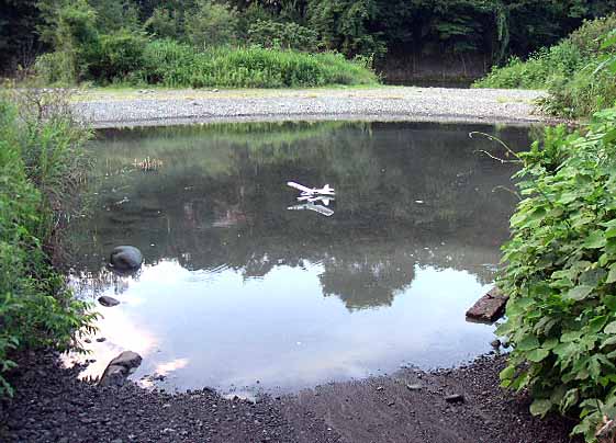 上手に操縦すれば、離水の後に水たまりからはみ出さずに飛行して、