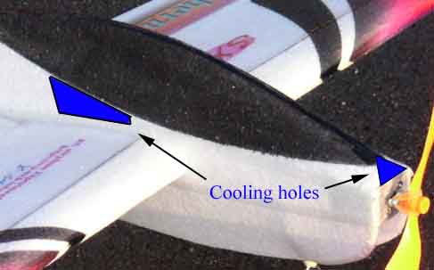 リポやモーターが熱くなりすぎる場合は、これらの部分に穴を開けてください。
