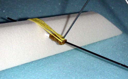 1.2mmカーボンロッドによる補強。 水平尾翼のカーボン補強をしていない機体が多数見受けられますが、