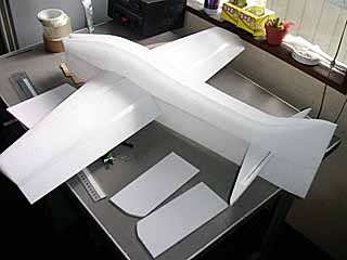 EPP製の主翼を持つバージョンを新たに製作す る 沢山のテスト飛行とカット&トライで、翼型と翼の平面形も決まってきたので、