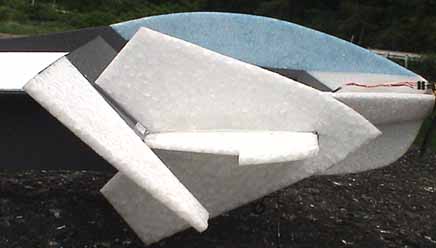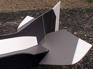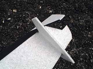 ![]() SouthernX-AMは、EPPとデプロンのハイブリッド機です。 剛性が必要な部分はデプロンで、クラッシュにより壊れやすい部分はEPPを使っています。 ![]() いつものように、フリーソフトのメタセコイヤによる設計。 デプロン機のカッチリ感をスポイルしないまま、 より軽量でクラッシュに強いEPPを出来るだけ多く使うことによって、 一般的なデプロン機よりも少し高い耐クラッシュ性を持ちつつ、 軽量に仕上がるように、それぞれの組み合わせを考えました。 ![]() 一般的な機体より一回り小さくして、AM仕様としての高い運動性を狙っています。 ちなみにスパン720mmです。 ![]() 主翼はEPPですが、カーボン補強により剛性感はかなりあり、 軽くて結構いい感じです。 完成 ![]() メカ積みとリンケージが終わりました。 ![]() 胴体補強板を1mmスチレンの白にしたら、シャチみたいなデザインになってしまった。(笑) インプレ 早起きして飛ばしてきました! 大体想像していた通りか、それ以上の性能が出ているようです。 機体が小さめなのでヤンチャすぎるかなと思っていましたが、 まったくそんなことも無く、ゆっくり飛ばせばマイルドそのものです。 コントロールしやすい上に舵も正確にバシバシ入りますし、 飛ばしていて非常に楽しいです。 ローリング・ループは今まで作った機体の中でも一番綺麗に決まりますし、 失速してコロッと行くことも無く、トルクロールも楽々です。 ![]() この機体、驚いたことに今後何にも改良するところがありません。 出来上がった瞬間に開発が終わった機体は、いままで経験がありません。 私としては、問題がある機体を試行錯誤するのが楽しかったりするのですが…。(笑) ![]() 剛性が高く、スティックの操作にダイレクトに瞬時に反応するので 操縦することが大変楽しい機体です。 翼端板の角度は、かなりのトーアウトの方が良いようです。 ![]() また全備116gという軽量機なので、 舵角を小さくすれば機体サイズから想像できないほど マイルドに飛行することも可能です。 ![]() 舵をフルに切った状態。 飛行中に舵をこんなに切っても、不意にコントロールを失うことはなく きちんと機体が付いてきます。 この写真を見ると、なんかランボルギーニのスーパーカーっぽい 雰囲気のデザインに見えるかもしれませんね。 各部の写真 ![]() AXi 2203は素晴らしいモーターだと思います。 マウントは0.75mmポリプロピレン板なので、墜落しても割れることはありません。 ![]() 受信機はもちろん、私が絶対的な信頼を寄せているBerg 4。 2千円ぐらい高いからといって受信機代をケチってはいけません。(笑) ノーコンになると機体を一瞬で失いますからね。 改 造すると8チャンネルまで増やせるし・・・。 ![]() 主翼張り線は1.2mmです。 各ロッドが集中する接着部の丸い補強は、ケント紙で出来ています。 主翼のカーボンロッド補強は バッテンにするよりも一点に集中させた方が 数倍ネジリ剛性が高くなります。 最初作る時にバッテンにしたのですが、どうしてもネジリ剛性に満足できず、 全部ばらして一点集中方式にやり直しました。 ![]() なるべく翼端(最先端)から胴体へロッドを渡すと ねじろうとしても絶対動かないほどの主翼の剛性が得られます。 ![]() 主翼前縁補強のカーボンシートを板厚よりも1〜2mm幅広にして 主翼上下面に飛び出させることによって乱流効果が発生し、格段に飛行フィーリングが向上します。 具体的には、翼端失速のような現象が綺麗に無くなり、 機体が予想外に滑ってフラフラしたりしなくなります。 また、水平飛行の雰囲気も良くなります。 これを言葉で表現するのは難しいですが、翼が空気をしっかり捕らえて離さなくなり シットリ感のような非常に好ましいフィーリングとなります。 最も簡単に出来る乱流発生装置なので、皆さんも是非試してみてください。 板翼機の前縁にカーボンシートを貼り付けるだけで大きな効果が得られます。 ただしこれが効果的なのは、前縁に後退角が付いている機体に限られるようです。 ![]() 全備116.2gです。 バッテリーはハイペリオン300mAh2sですが、 中のハードカバーとコードが非常に重いので、外して極細コードに付け替えています。 ![]() 墜落時はほとんどノーズから落ちるので、機首部は100%EPP製です。 ![]() エルロンカウンター部はEPP製で、墜落の衝撃にある程度耐えます。 ![]() 脚は1.5mmのカーボンロッド、 OK模型スポンジタイヤ(15mm)を使いました。 エルロンにデジタルサーボ ![]() 以前から試してみたかった、FUTABA デジタルマイクロサーボ S3154を使ってみました。 これは素晴らしいサーボですね。 スティック動作に非常に正確に動きますし、スピードも早く分解能も素晴らしいです。 ギヤのガタが少ないのもいいですね。 8ポイントロールが今まで経験したことが無いほどサクサク決まります。 これは多分、世界でもトップクラスの性能を持つサーボでしょう。 私は今後の機体にこのサーボを多用すると思います。(笑) ちなみに