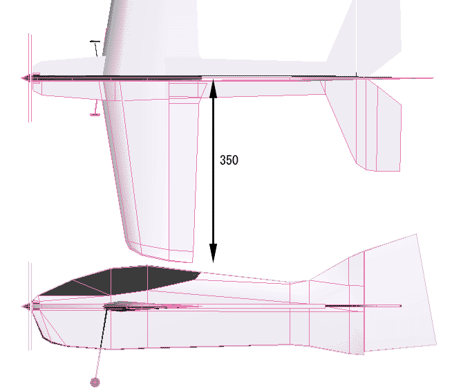 エレベーターが敏感すぎる感じがしたため、水平尾翼を後退させました。