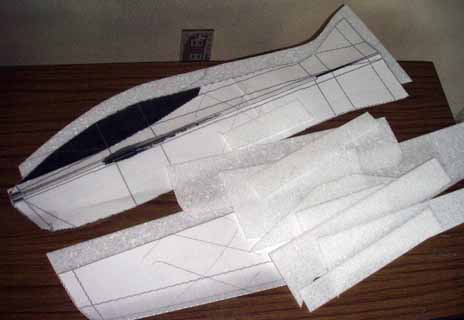 組み立ては、それぞれを十字に接着するだけです。 ヒンジテープの重量を無くすため、 塗装