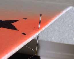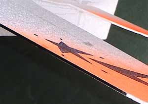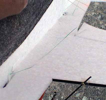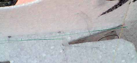 前縁と後縁にカーボンシートを細く裂いたものを貼り付けて補強しました。 張り線