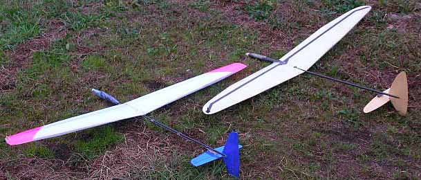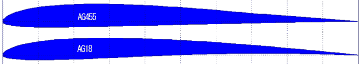 SAL入門者のためのキット ハンドランチグライダーの飛行をいままで見たことが無い人に、 私が実際にSAL機でサーマルを捕らえて、10分程度の時間高高度を飛ばして見せると、 だれもが一様に驚き、ほとんどの人に「これは是非やってみたい!」と言われます。 そして、そのあと「どのキットを買えばいいのですか?」と質問されます。 でも、そこで私は言葉に詰まってしまうんです・・・。(^_^;) ![]() 高額な値段の競技機の性能が素晴らしく、サーマルにも乗りやすくて 飛ばして一番楽しいのは分かっているのですが、 やったことが無い人がそのような高価な機体をいきなり買おうとはしないでしょう。 安いSAL機のキットは無いわけではないですが、 きちんとサーマルハントを楽しめる性能を持つ2万円以下のSAL機となると ほとんどありません。 そこで私は、入門者用に出来る限り安くサーマルハントが楽しめるSAL機のキットを 開発しようと思い立ちました。 入門者には小型のSAL機? ![]() 最初は入門用として小さな機体を考えていました。 EPPやスチレンペーパーの翼を持つ安くて小さいラダー機(スパン800mm)です。 しかし、実際に作ってみるとEPPの薄翼では剛性が保てず 面倒なフイルム(PPテープ)貼りが必要になったり、 製作者にも軽量化の技術がいりますし、 飛ばしてみても滑空性能が良いとは言えないものでした。 この機体をこのままキット化に向けて進化させていったとしても フルサイズのSAL機の飛びには到底かないませんし、 買ってくれる人も飛ばしていてストレスが溜まるだけでしょう。 それに飛ばしていてサーマルに乗れない時に、 「入門用の機体だからしょうがない・・・」と諦めてほしくありません。 私はこの機体を数回投げて、すぐに このコンセプトで進めることを止めました。(^_^;) やはりフルサイズで 入門者とはいえ、出来るだけ高性能な機体を飛ばしたいはずです。 ある程度コストはかかりますが、やはり直貼りのフルサイズの機体でいくことにします。 ただし、出来る限り高価な材料は使わないようにし、 誰が作っても確実に本来の性能が出るように、構造上の工夫をしなけなければなりません。 フルサイズの試作機 ![]() 主翼を切り出し、フードセーバーでバギングを行ないました。 翼型は中央部からAG18>AG18>AG19です。 一般的なAG455>AG46>AG47を使わなかったのは、 より薄翼で抵抗が少なく滑らかなキャンバー付きなので 浮きが良いように思えたからです。 翼型比較 ![]() AG18を採用することにより、翼を薄くし さらに翼弦も減らして空気抵抗を抑えつつ、翼を軽量に製作します。 また後縁が真っ直ぐになる位に翼に後退角を付けてノーズも延ばし、 重心調整のためのバラストを少なくしようと考えました。 ![]() 胴体ポッドはソフトバルサで作り、フイルムを貼りました。 ボックス状でかっこ悪いですが、コストをかけずに なるべく簡単に作ることが出来なければならないので仕方ありません。 機首ブロックはEPPを使用し、耐衝撃性を持たせてみました。 メンテナンスハッチは下にあり、全高をギリギリまで抑えるためサーボの底面が見えています。 試作1号機完成 ![]() 軽く投げてみましたが、歴代のAtlantisシリーズの中では もっとも良い滑空性能が出ているようです。 高価な材料を使っていない割には充分軽いですし、(この時は全備240gほど) 薄翼化により空気抵抗が大変少なく、滑るように滑空します。 ![]() AG18は思った通り、とても良い翼型のようです。 ただ、今の設計では翼端の剥離が少しだけ早く、 低速での急旋回を行なう時に不意に落ち込む時がたまにあるので、 グライダー入門者でも飛ばせる操縦性になるまで改良が必要です。 ![]() ためしに思い切り投げてみたら、バルサ製ポッドが遠心力で折れてしまいました。(^_^;) 重心調整のため長めになっていることもあり、バルサだけでは強度が持たないようです。 この部分は根本的な設計変更が必要ですね。 改良版 ![]() カーボンパイプを機首まで延長し、サーボもパイプに直付けすることにしました。 これで折れる心配も無くなります。 主翼もパイプにネジ止めなので、製作時に自由に取り付け位置を選べます。 このため、機首に色々な重量のメカを搭載してもバラストを積むことなく、 重心を合わせることが出来るようになりました。 ![]() ポッドはとりあえず、PPシートを巻いてテープで留めて作ってみました。 機首付近までカーボンパイプがあるので、ポッドに剛性はいりません。 ![]() 水平尾翼はパイプの下に付けました。 ちなみに水平尾翼が下に付いていると、ランチの時にパイプはアップ方向に曲がり、 上に付いているとダウン方向に曲がります。 ランチ直後にダウン方向に曲がるのは危険なので、 水平尾翼は下に付いていた方が安全面で良いと思います。 もちろん、これは充分な剛性があるテールブームの場合には問題になりません。 また、水平尾翼が下に付いている場合は、 ランチの瞬間、パイプが垂直尾翼が向こう