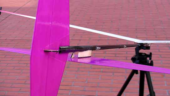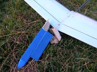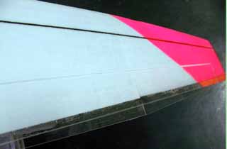 上面のエポキシ接着剤を多めに盛る部分は必ず行なってください。 非常に強い圧縮と曲げ応力がかかりますので、マイクログラス1枚だけでは持ちません。 ![]() ただし、マイクログラスではなくカーボン繊維+エポキシ樹脂で左右接合する場合には エポキシ接着剤を多めに盛る作業はいらないかもしれません。 フラッターについて 4.7gサーボを使用していて、 変にこじったランチをするとエルロンにフラッターが起きることがあります。 スムーズに投げればフラッターは起きないのですが、 もしいつもフラッターが起きるような場合は、以下の対策を試してみてください。