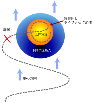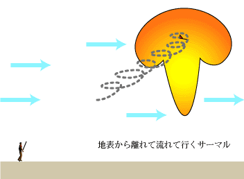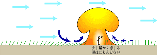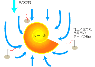 風にながれてくるサーマル周辺の風の動きは、大体下のイラストのようになります。