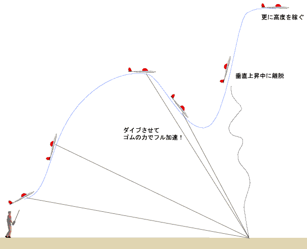 ダイブさせて高度を稼ぐ シャーレ翼など翼の強度がある機体の場合は、