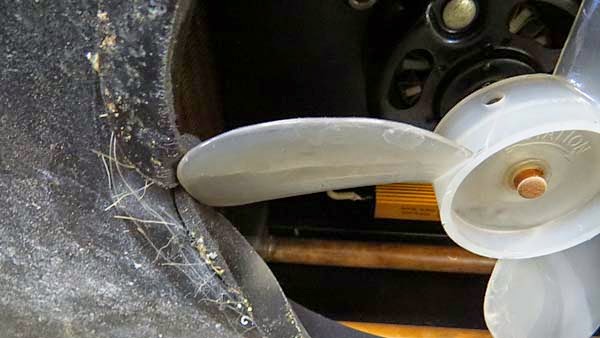 外して点検してみたところ、スポンジが噛みこんでいます。