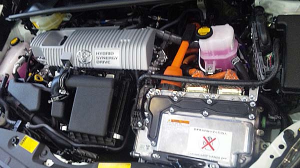 プリウスのボンネットを開けるとビックリメカが満載されているのが判ります。
