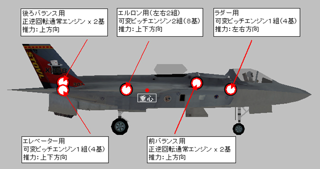 十分に効きますので、垂直離着陸、水平ホバリングが可能になっています。